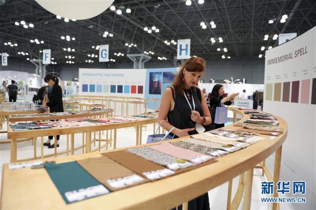 7月22日,客商在美國紐約舉行的第二十屆中國紡織品服裝貿(mào)易展覽會上參觀。